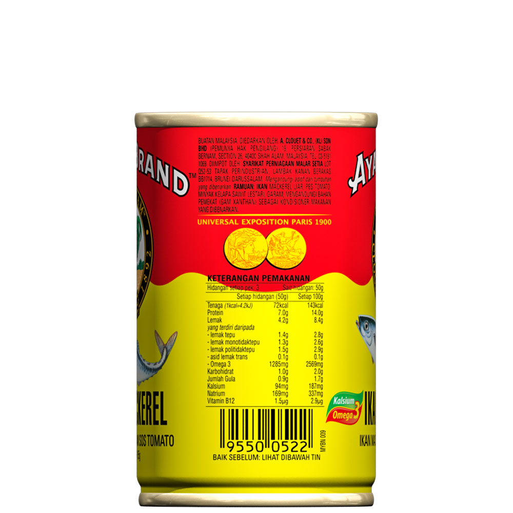 Mackerel In Tomato Sauce 155g Large pieces of selected mackerel fish* Rich tomato sauce** Serve 2 155g * Ayam Brand™ selects only cold oceans' mackerels. The fishes are tasty, fatty, tender and full of natural Omega 3. Mackerel is especially rich in Vitamin B12 which is ideal for our nerv ...Read more